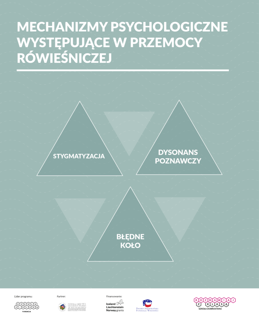 - Załącznik nr 37 Przemoc rówieśnicza, Mechanizmy psychologiczne występujące w przemocy rówieśniczej, Szkoła z klasą